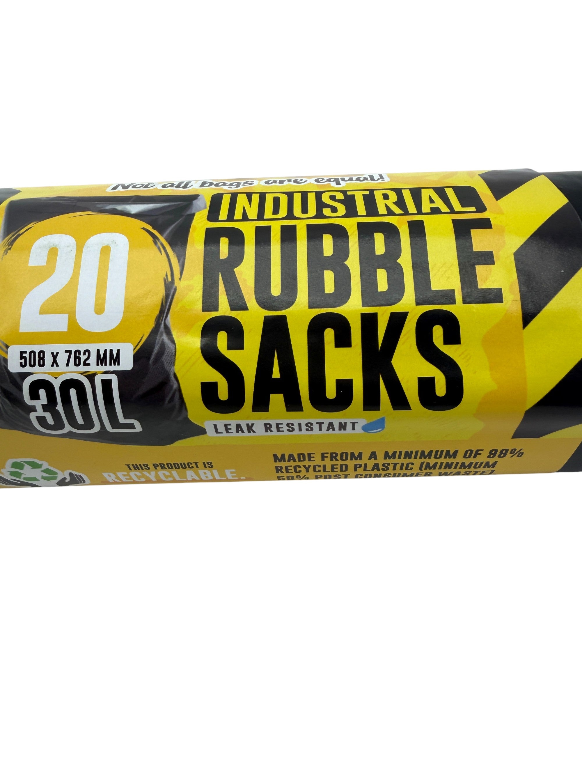 Handle demanding projects with our pack of 20 industrial rubble sacks, engineered for superior strength and reliability in the toughest working conditions. These robust 30-litre waste bags measure 508x762mm and feature an industrial-grade design that's leak-resistant and made from a minimum of 98% recycled plastic. Each bag is designed to withstand heavy loads, sharp debris, and challenging environments where ordinary bags simply won't do.