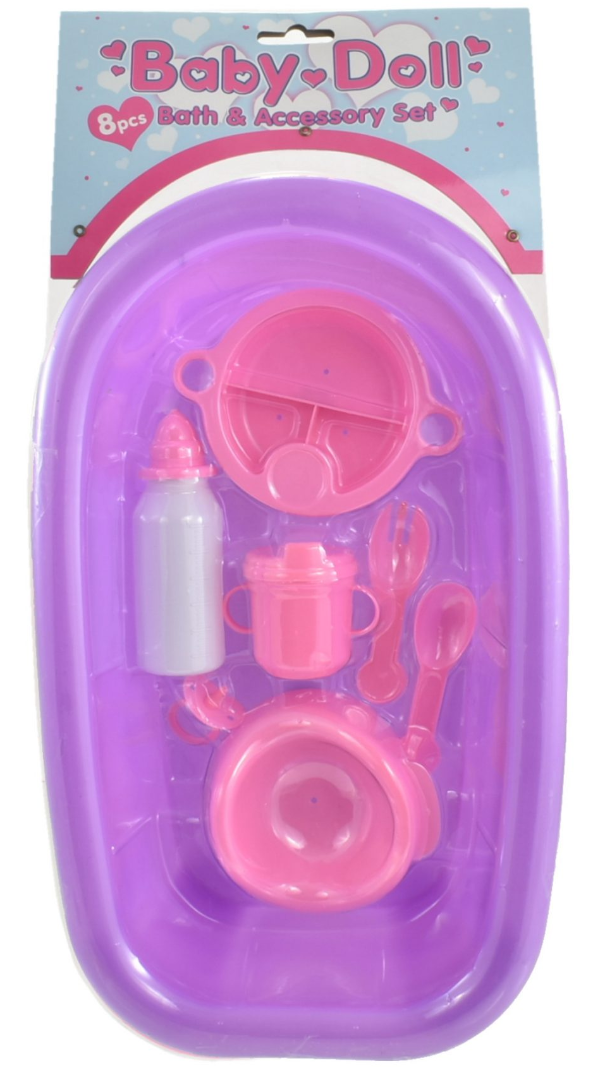 8-Piece Baby Doll Bath and Bottle Toy Accessories Set - Perfect for Pretend Play