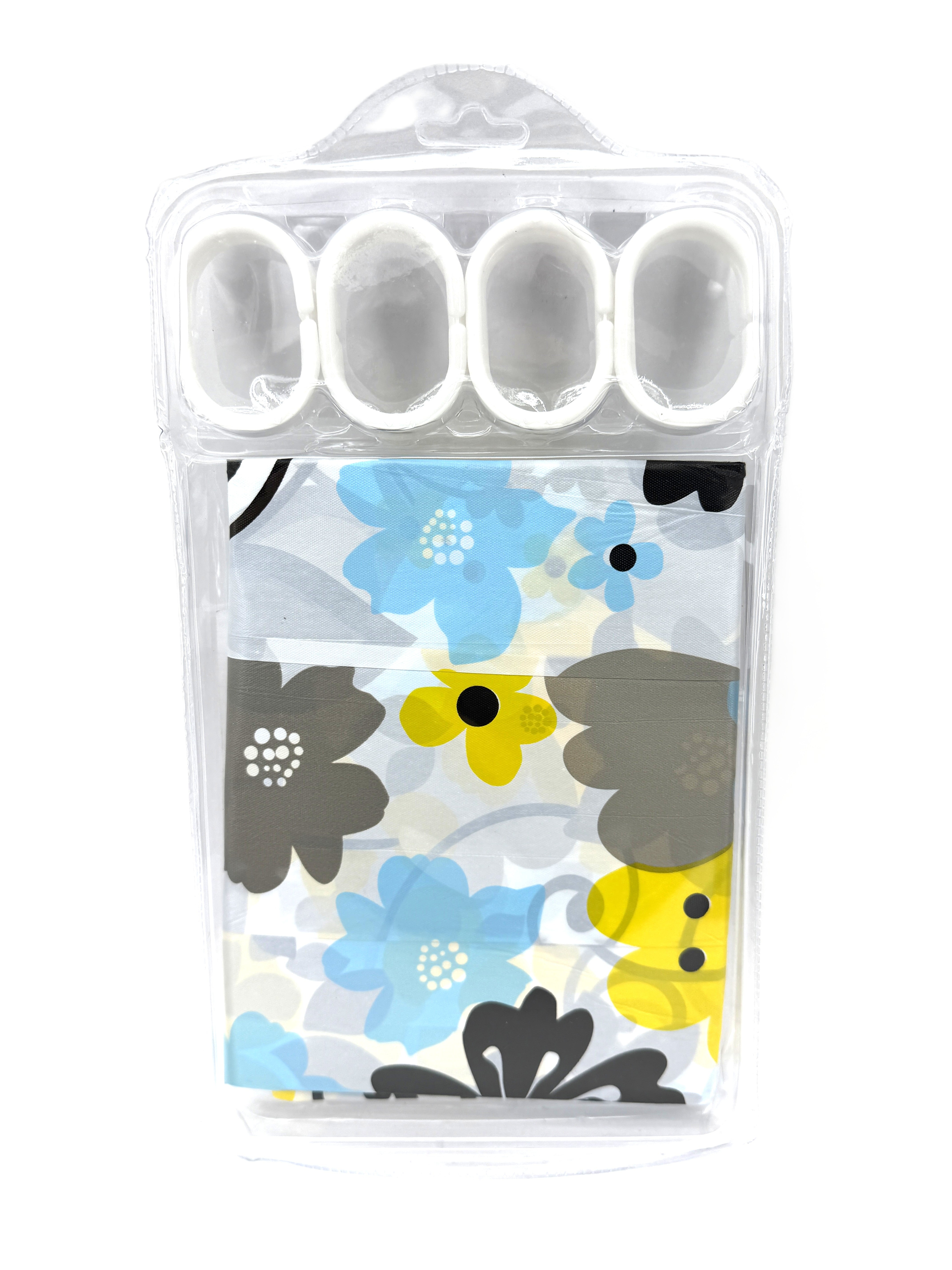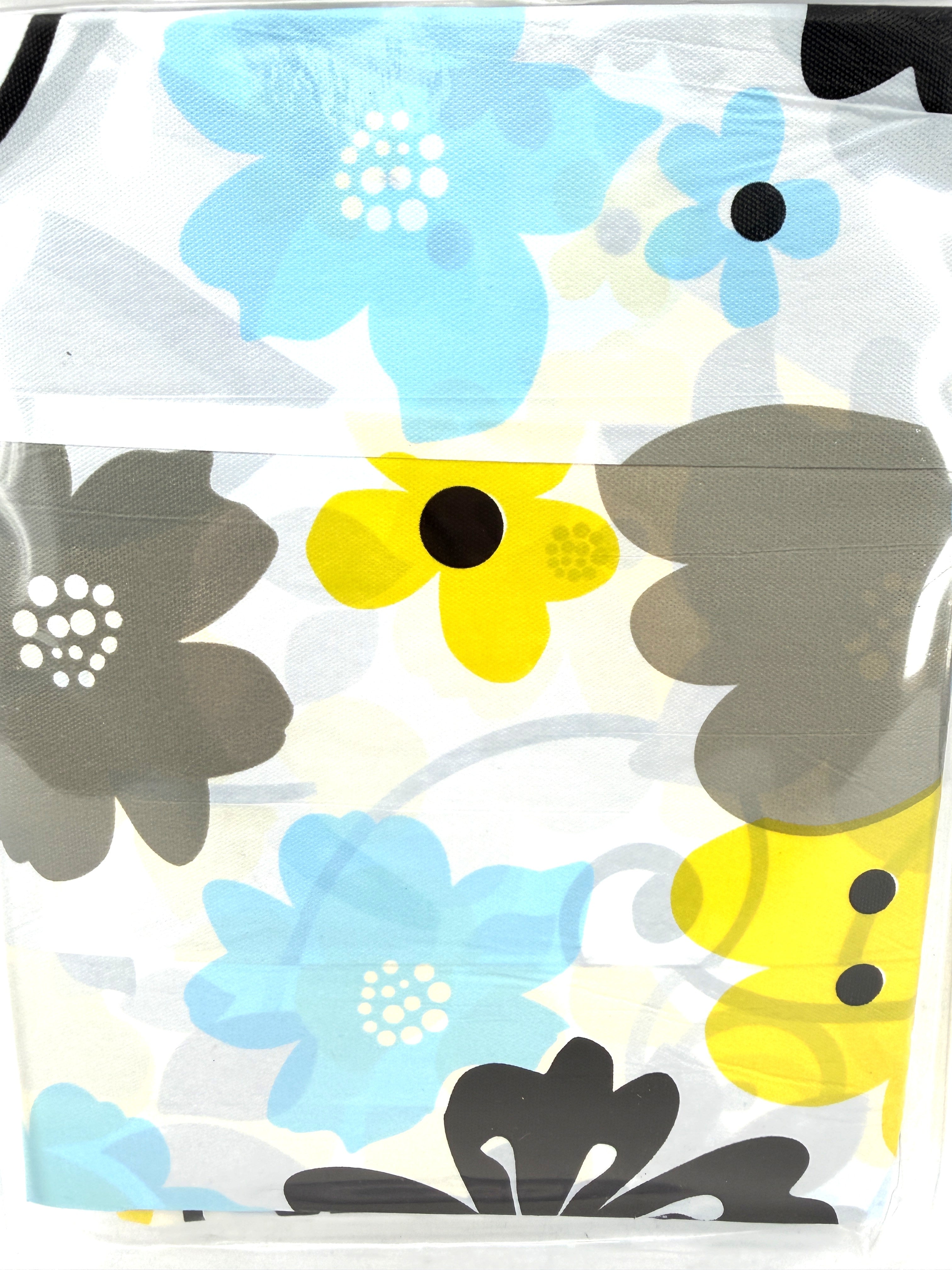 Brighten your bathroom with the charming "Adorn Floral Pattern Shower Curtain Set." This cheerful curtain features an elegant and playful design of modern flowers in a delightful palette of yellow, light blue, and grey against a subtle background, adding a refreshing touch to your space.