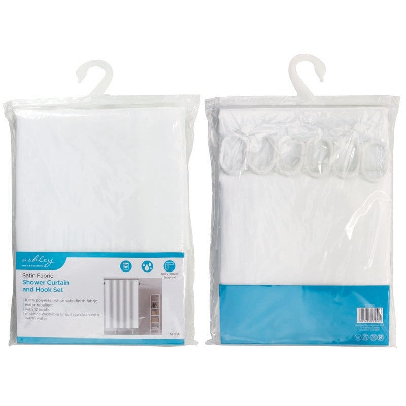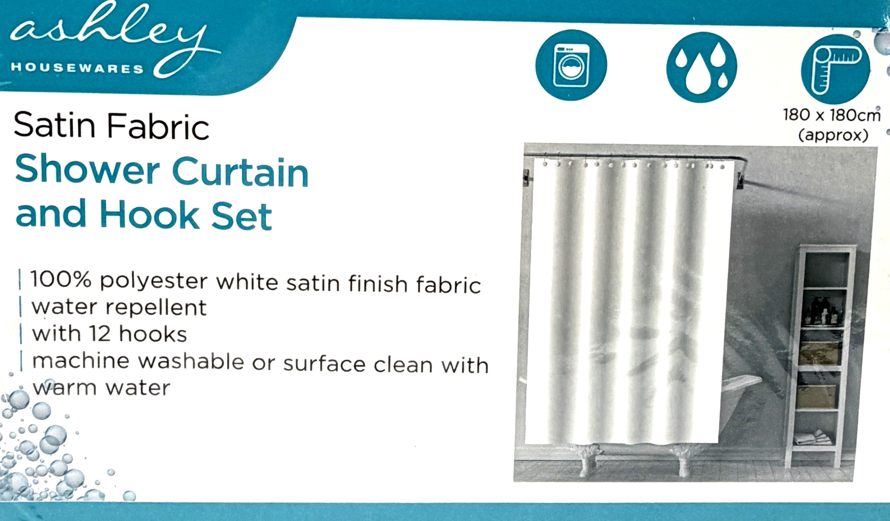 Elevate your bathroom with the elegant and practical Ashley Housewares White Satin Fabric Shower Curtain and Hook Set. This high-quality curtain, available exclusively through Kumperi, features a crisp white satin finish fabric made from 100% durable polyester.