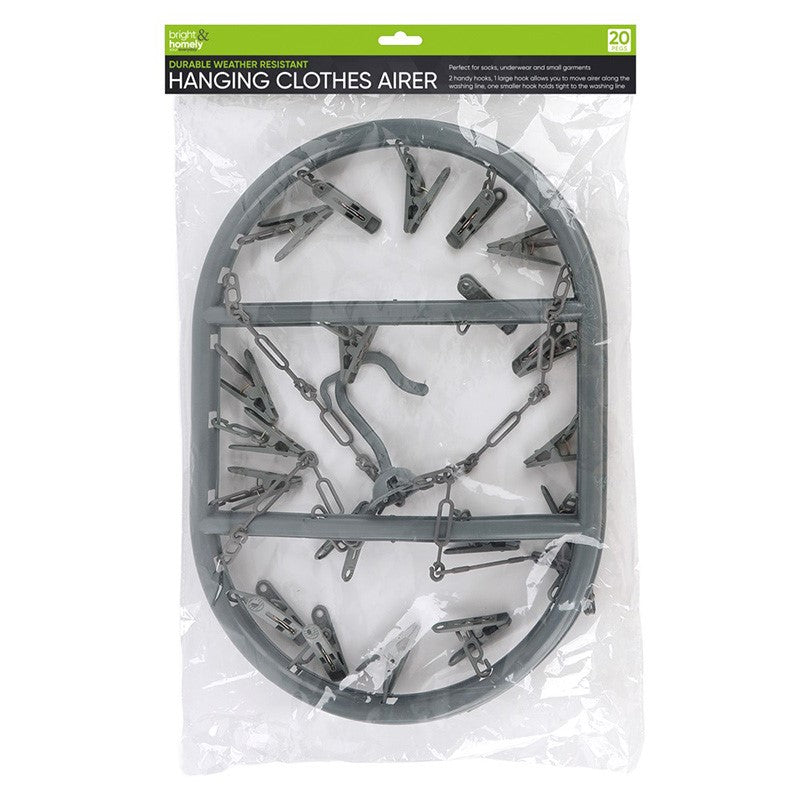 Maximize your drying space with the Bright & Homely Hanging Clothes Airer from Kumperi. This innovative oval-shaped drying rack features 20 built-in pegs and dual hanging hooks, perfect for efficiently drying socks, underwear, and small garments indoors or outdoors.