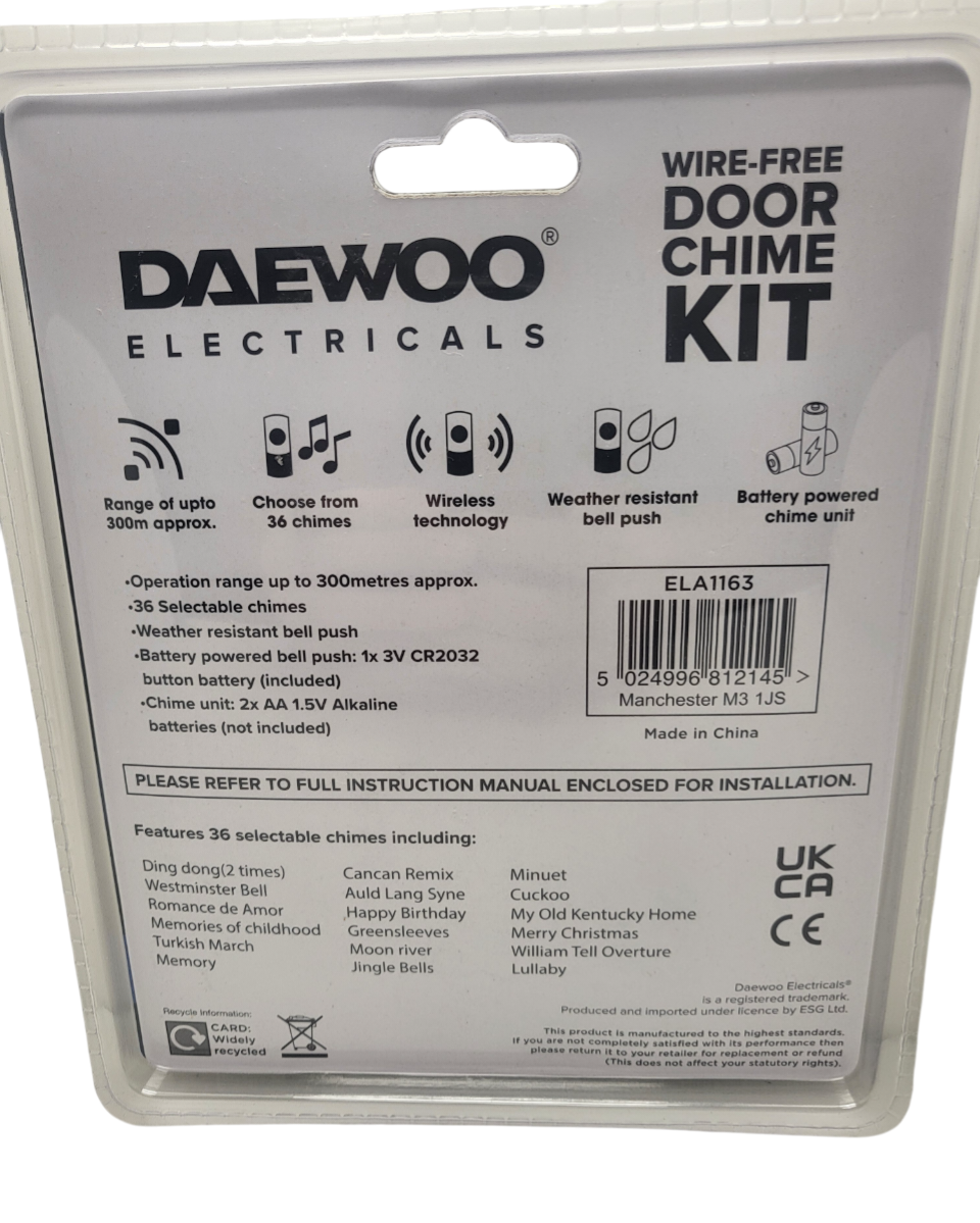 Enhance your home security with this Battery Powered Doorbell Chime, a wireless kit boasting an approximate 300m range and 36... Read more